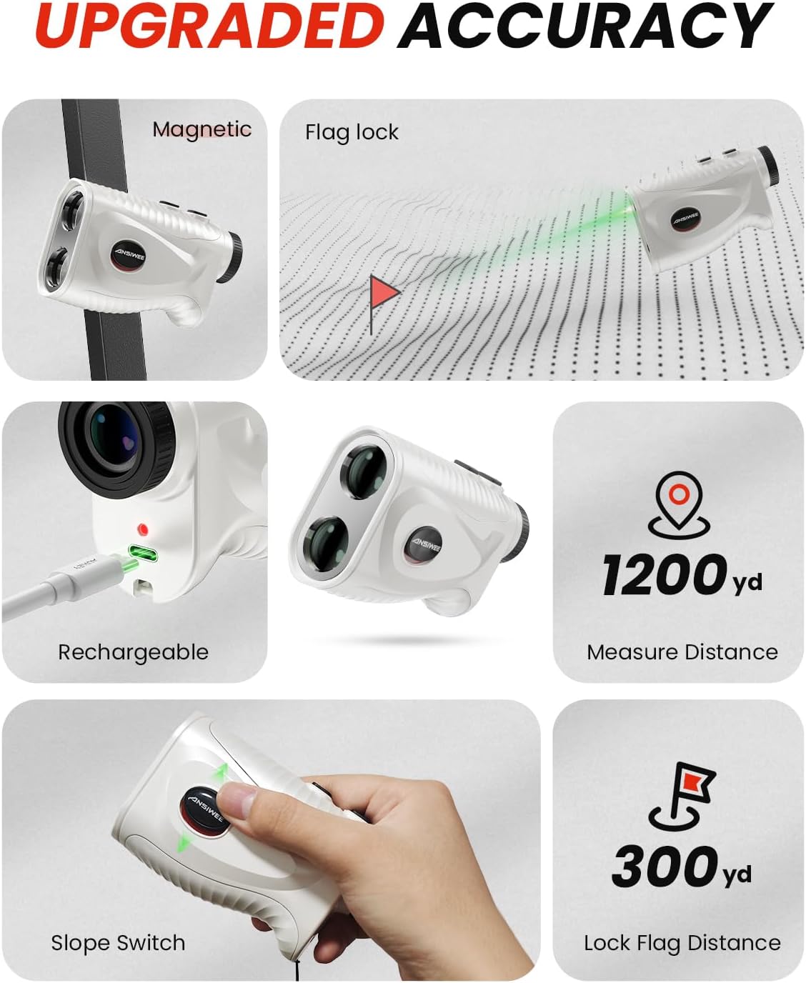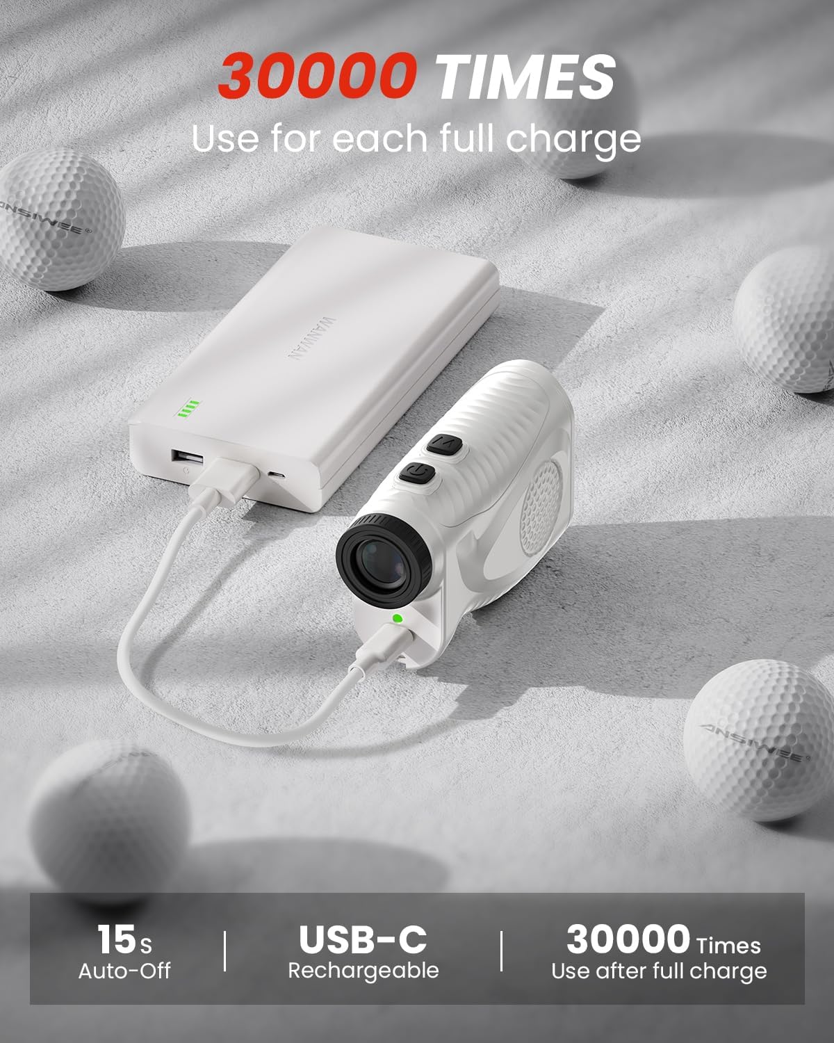 - POTENTE Y PORTÁTIL RANGEFINDER DE GOLF: Manténgase cargado con una batería recargable de 750 mAh que dura hasta 30.000 clics por carga. La compatibilidad USB-C garantiza recargas de energía sin esfuerzo. El apagado automático después de 10 segundos ahorra energía. Fije seguro a palos o carros con la tira magnética integrada.