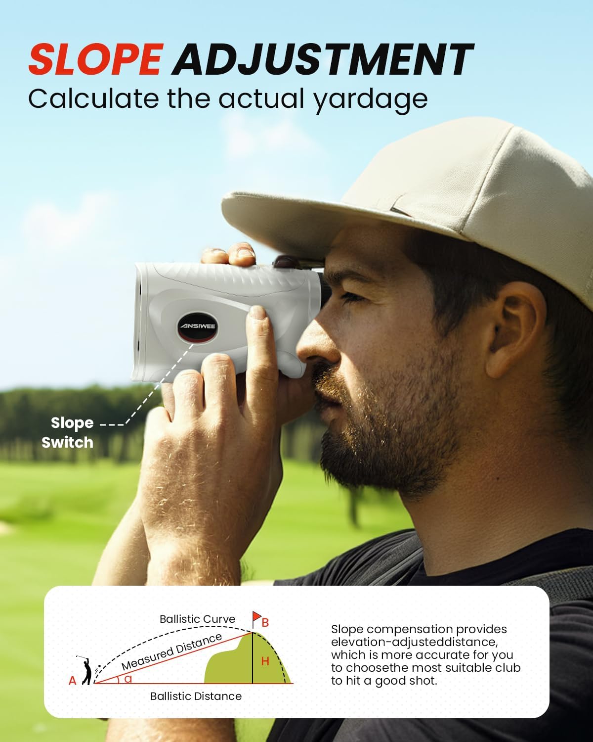 - Fácil de usar: cambia rápidamente entre 3 modos con un solo botón en este telémetro láser de golf: medición de distancia (M1), compensación de pendiente y vibración de bloqueo de bandera (M2) y velocidad y escaneo continuo (M3). Disfrute de ajustes ARC y orientación precisa en asta de bandera con una pantalla LCD clara. Perfecto para golf, caza, topografía y más allá; siempre comienza optimizando el enfoque para una vista nítida del asta de la bandera.