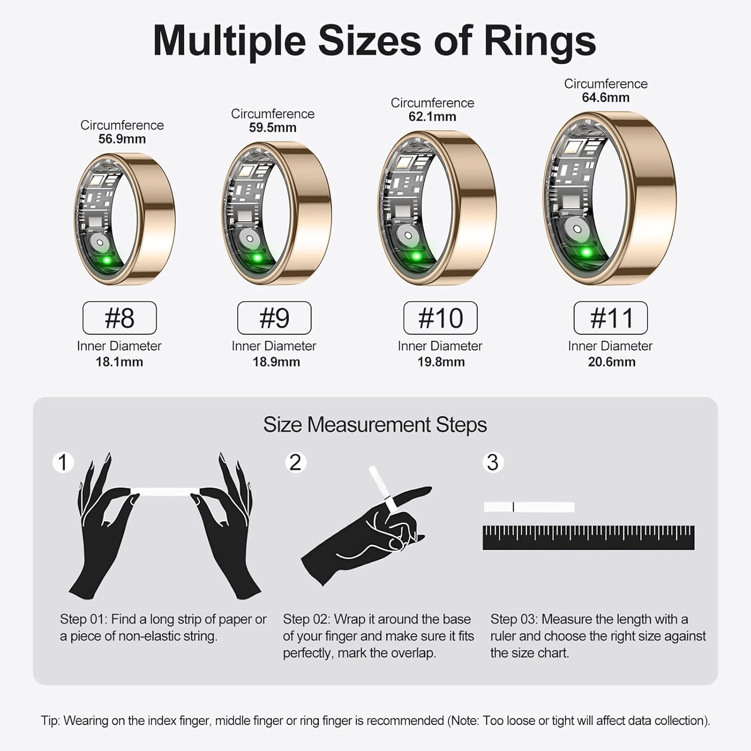 - Monitorea tu salud y actividad física con el Anillo Rastreador Temdan, tu compañero inteligente en la muñeca. Este elegante anillo dorado en talla 9 registra pasos, calorías quemadas, calidad del sueño y ritmo cardíaco en tiempo real.