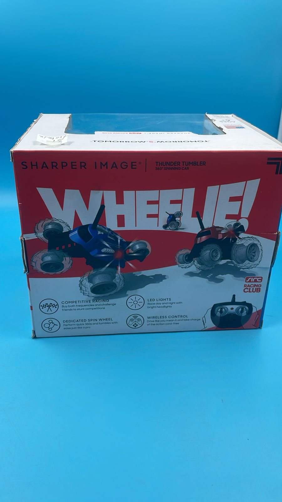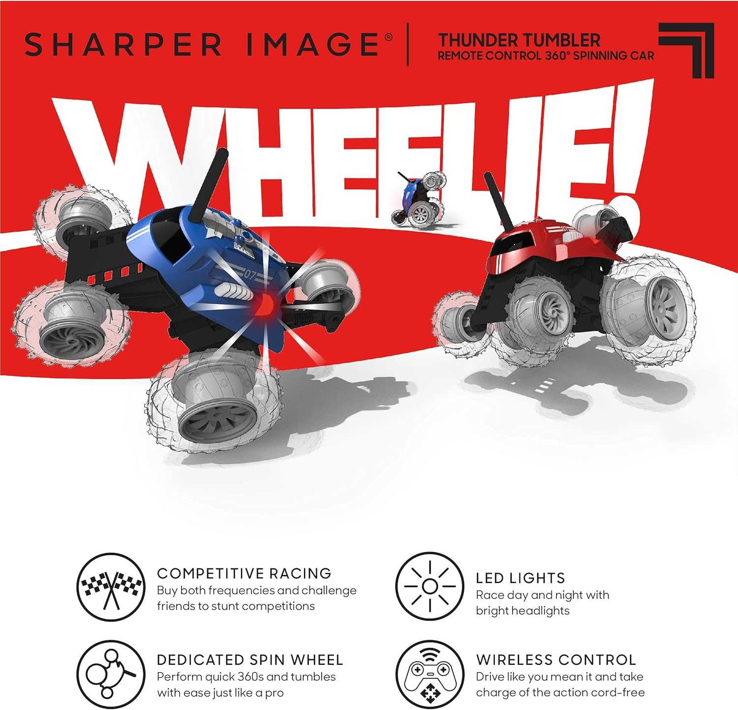 - ¡El vehículo teledirigido giratorio definitivo impresionará a todos con sus impresionantes acrobacias, caballitos, giros de 360 grados y fascinantes luces LED! El coche de carreras premium a control remoto Sharper Image ofrece horas de diversión sin fin gracias a su diseño agresivo y su quinta rueda patentada. ¡El control remoto inalámbrico totalmente funcional incluido es facilísimo de usar!