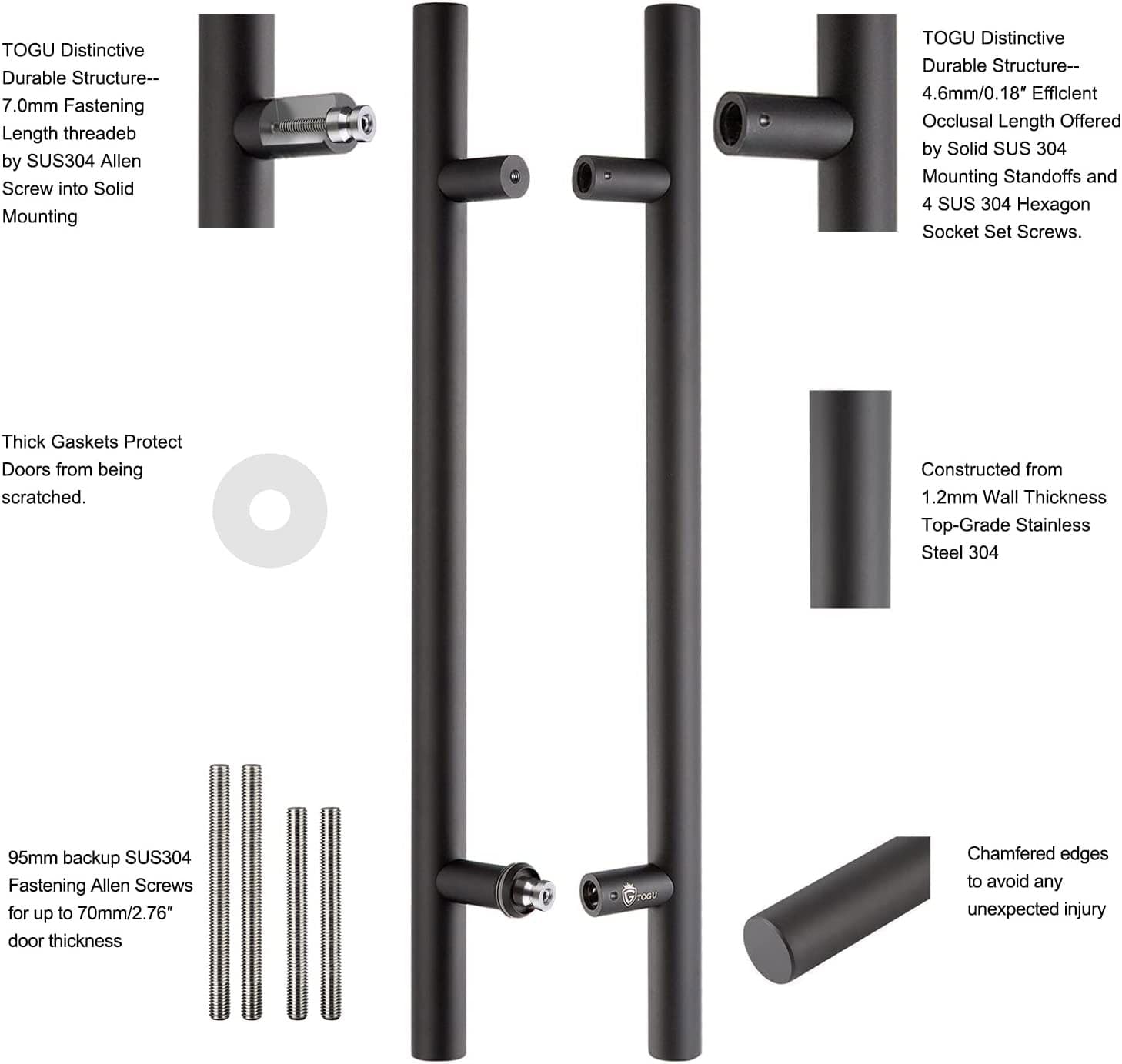 - Diseño elegante: grosor de pared de 1,2 mm de alta resistencia, mango de acero inoxidable SUS 304 de alta resistencia, separadores de montaje sólidos ofrecen una longitud de acoplamiento más profunda eficiente de 4,6 mm con 4 tornillos hexagonales SUS 304. Las manijas de puerta TOGU TG-6012 serie SUS 304 cuentan con una estructura distintiva y duradera con alta capacidad de resistencia a la corrosión, corrosión y deformación para una vida útil duradera sin holgura, deja que cada uno de tus dólares tenga el rendimiento de mayor costo.