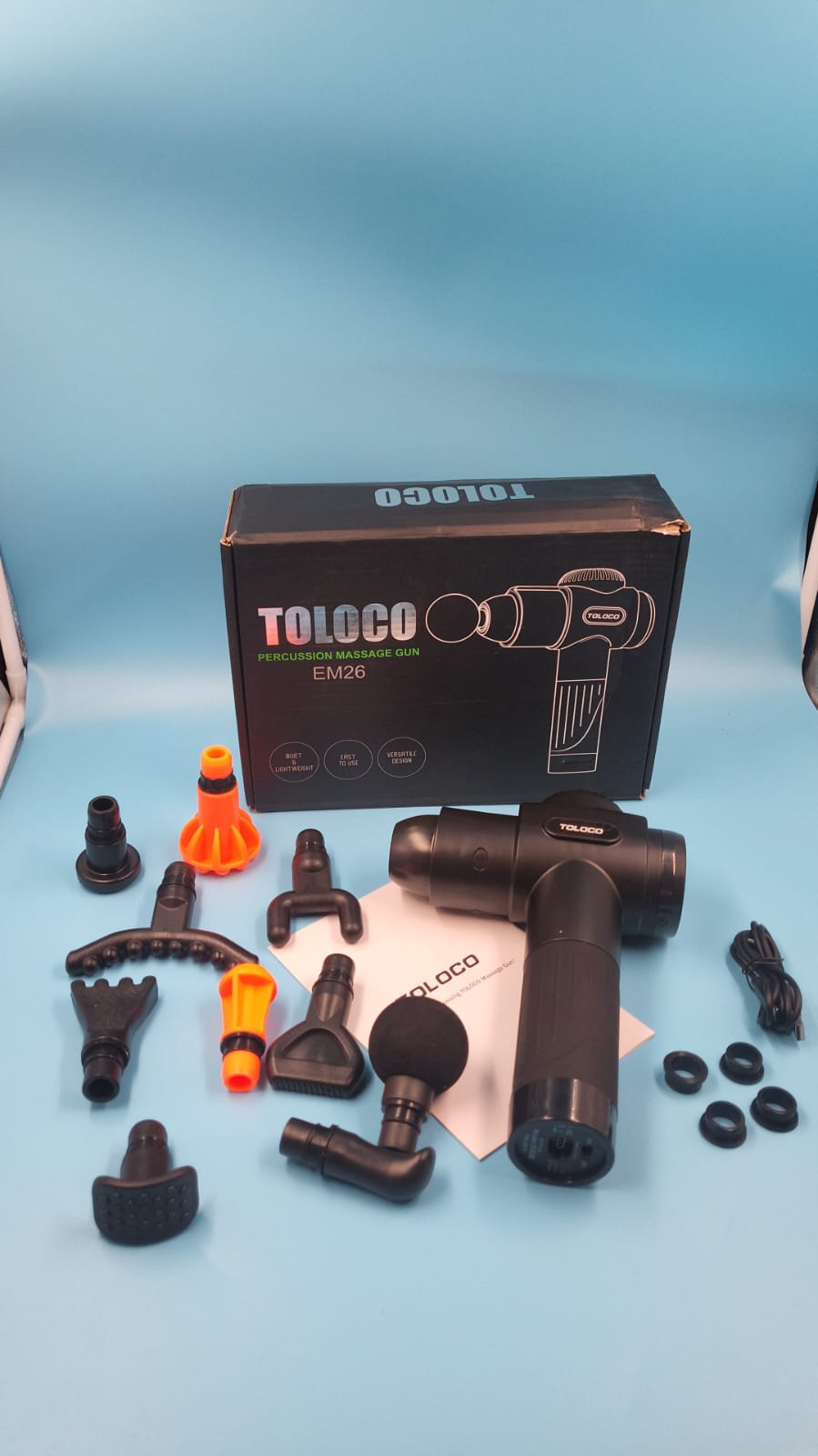 TOLOCO Pistola de masaje de percusión con 10 cabezales de repuesto.