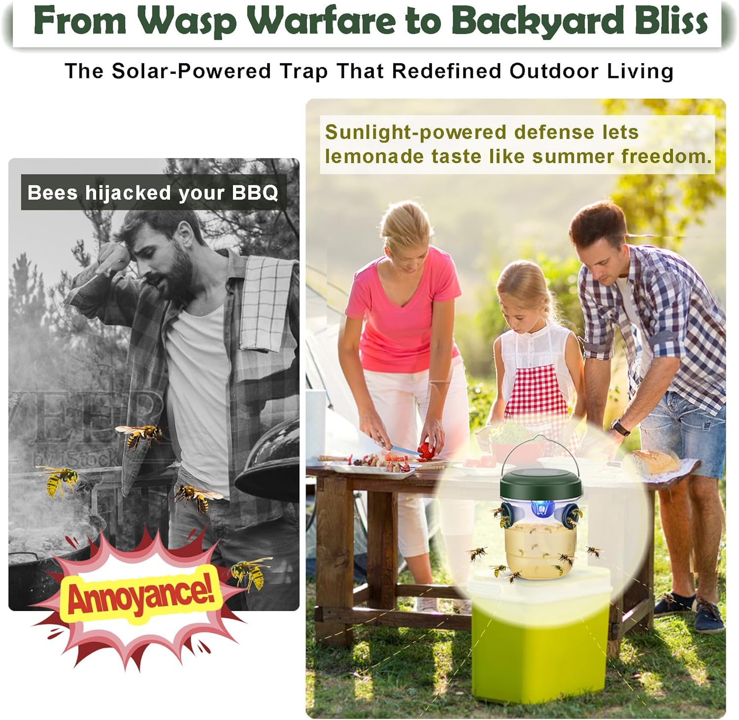 - Solución reutilizable y rentable: la trampa amarilla para chaqueta está diseñada para un uso a largo plazo. Después de cada captura, simplemente límpiala y rellena con tu atrayente preferido. La luz solar elimina la necesidad de baterías, por lo que es una forma rentable y sostenible de mantener a las avispas bajo control durante toda la temporada.