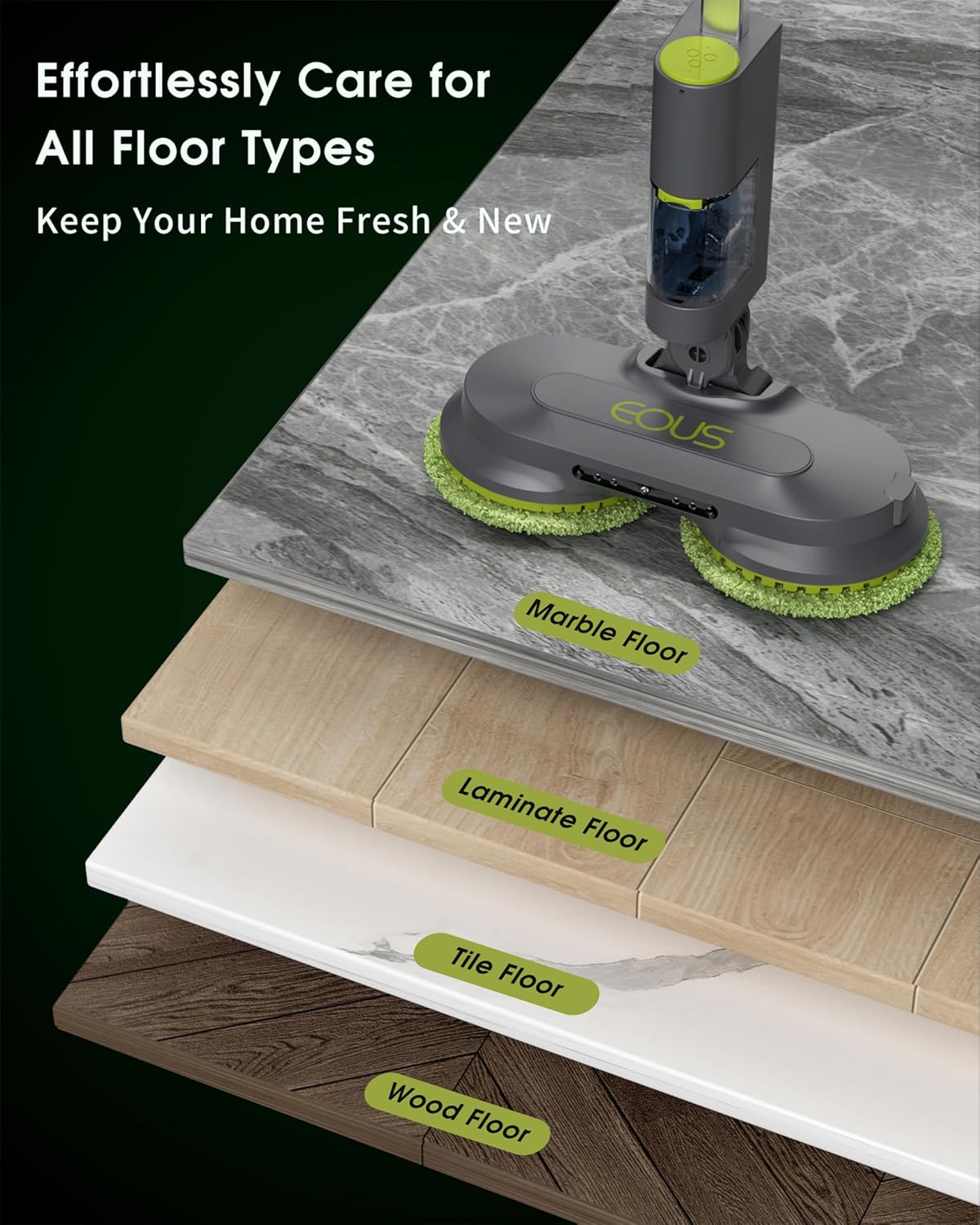 Fregona eléctrica inalámbrica para la máxima comodidad: esta fregona de piso eléctrica inalámbrica ofrece una libertad inigualable para limpiar cualquier área sin cables. Perfecto para suelos de madera, baldosas, mármol y laminados, es tu máquina de limpieza ideal para un hogar impecable.