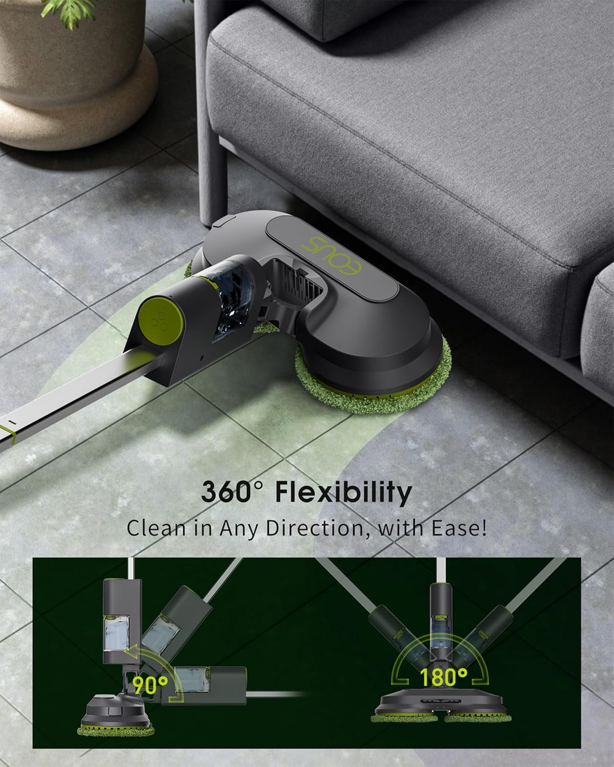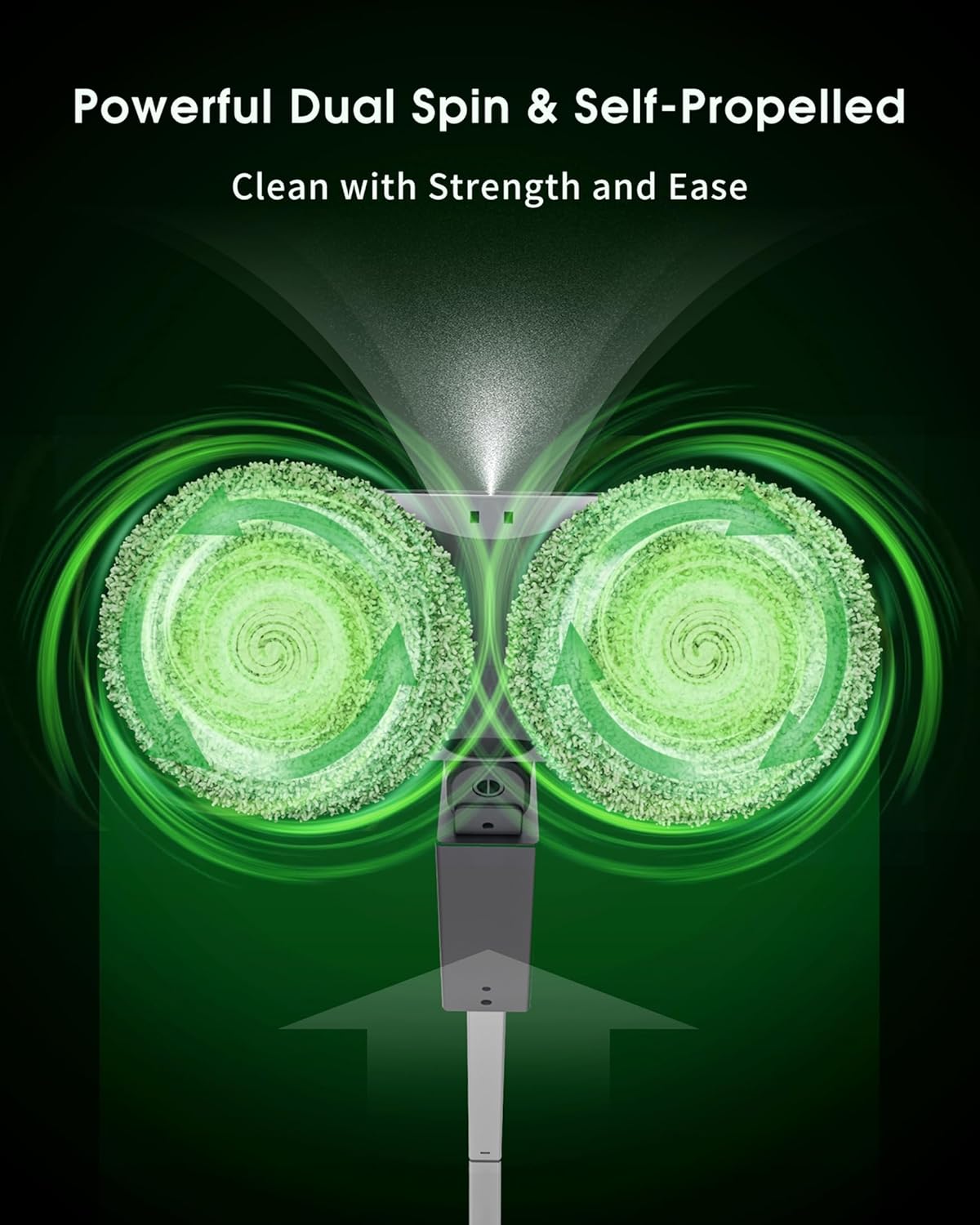 Potencia de doble motor para limpieza profunda: con 200 RPM, este limpiador de pisos eléctrico aborda las manchas difíciles y la suciedad. La fregona giratoria de doble motor garantiza una limpieza potente en todas las superficies lisas.