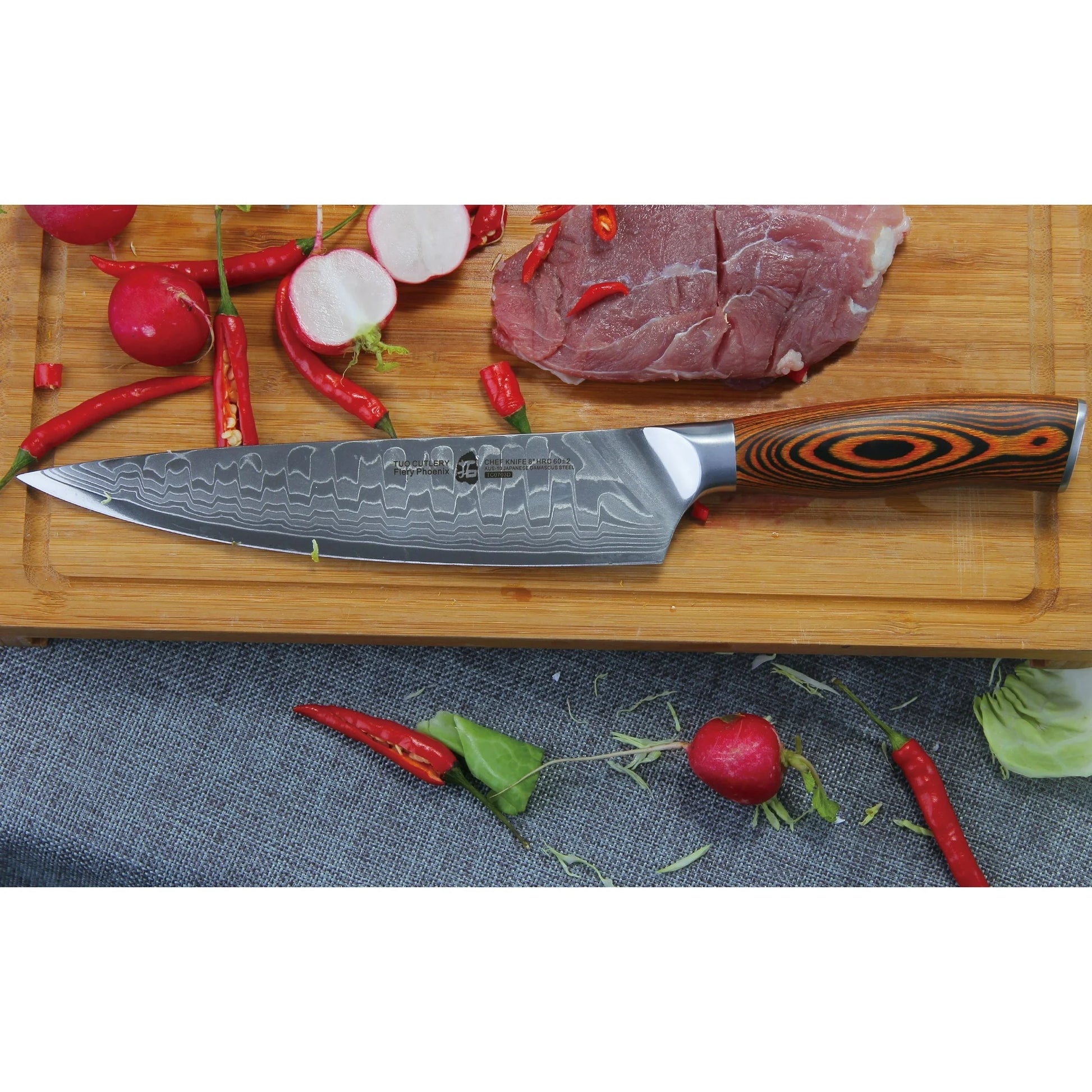 TUO Cuchillo de chef, Acero de damasco, 67 capas, dragon pattern.