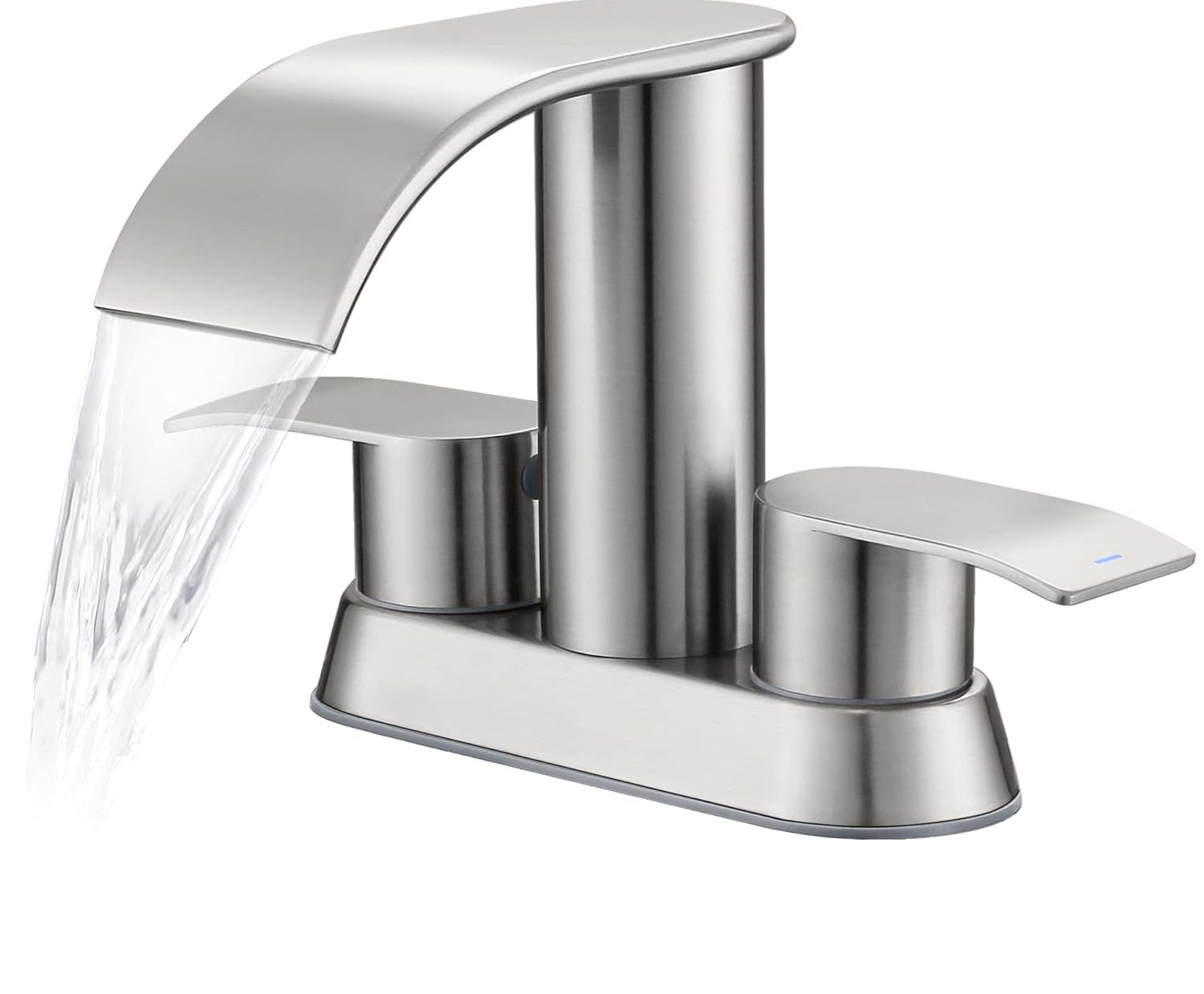 Ultimate Unicorn - Grifo estilo cascada para lavabo de baño, níquel cepillado, dos manijas , 3 o 3 orificios.