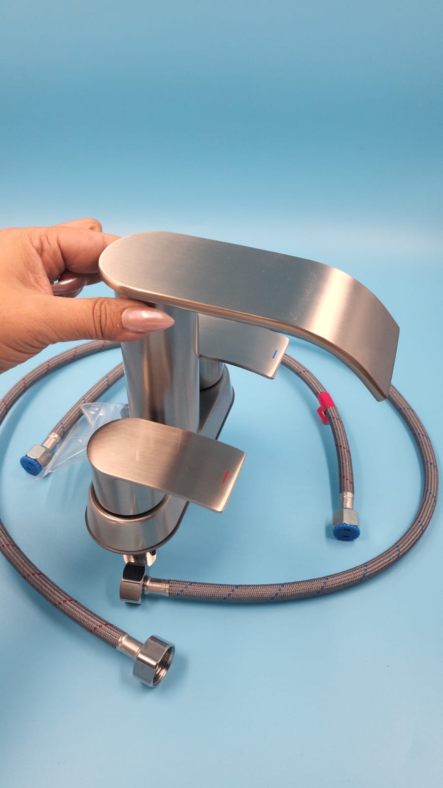 Grifo estilo cascada para lavabo de baño, níquel cepillado, dos manijas ULTIMATE UNICORN