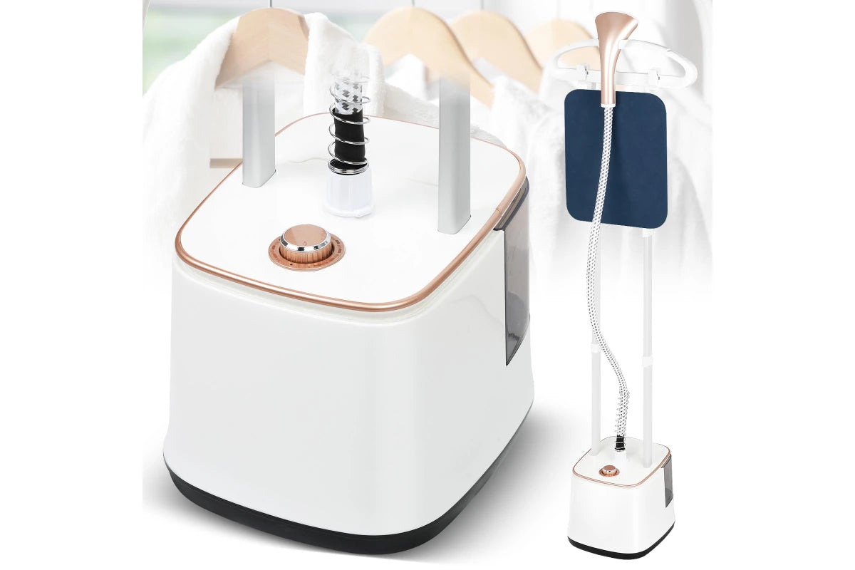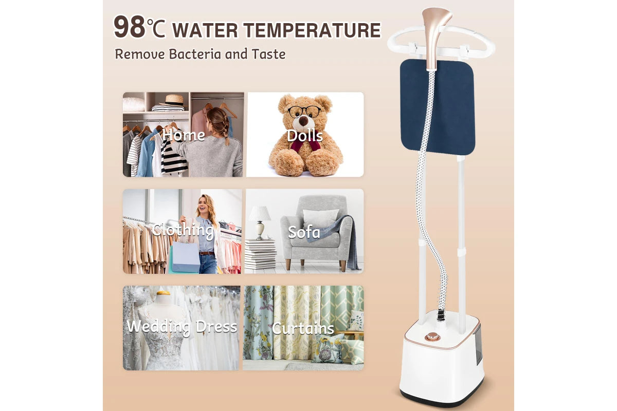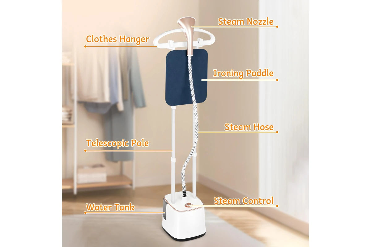 - Potente: 2000W Potente vaporizador de ropa de pie para un calentamiento rápido en 35 segundos para acortar el tiempo de planchado. 1.59 oz/min de vapor extra suaviza rápidamente las fibras para obtener resultados sin arrugas. Experimenta un rápido tiempo de calentamiento y una potente salida de vapor para resolver fácilmente todo tipo de arrugas difíciles y hacer que tu ropa se vea nueva. Estaba equipado con un cepillo de tela que elimina el polvo y el cabello adheridos a la superficie de la ropa, permitiendo que el vapor penetre más profundamente en la ropa para obtener mejores resultados de planchado.