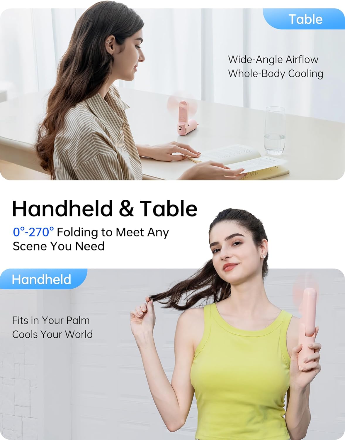 - Diseño plegable y tamaño pequeño: el diseño plegable hace que sea fácil de transportar y almacenar. Además, con la forma de cápsula (5.1 x 1.6 x 1.6 pulgadas, peso: 6.5 onzas), este ventilador recargable puede ocultar la aspa del ventilador, pequeño y fácil de deslizar en tu bolsillo y bolso. Elección de regalo para Navidad y Año Nuevo.