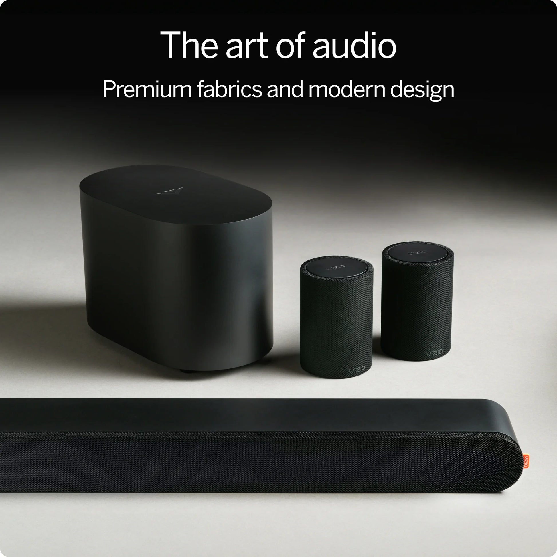- Sonido potente en todas partes: tres altavoces de rango completo en la barra de sonido, dos altavoces envolventes sin varillas y un subwoofer compacto sin varillas ofrecen 96dB de sonido de alto impacto detallado y dinámico que se integra perfectamente en su hogar. Utilice la aplicación móvil VIZIO para personalizar el audio de su cine en casa según el diseño de su habitación y la experiencia de escucha preferida.