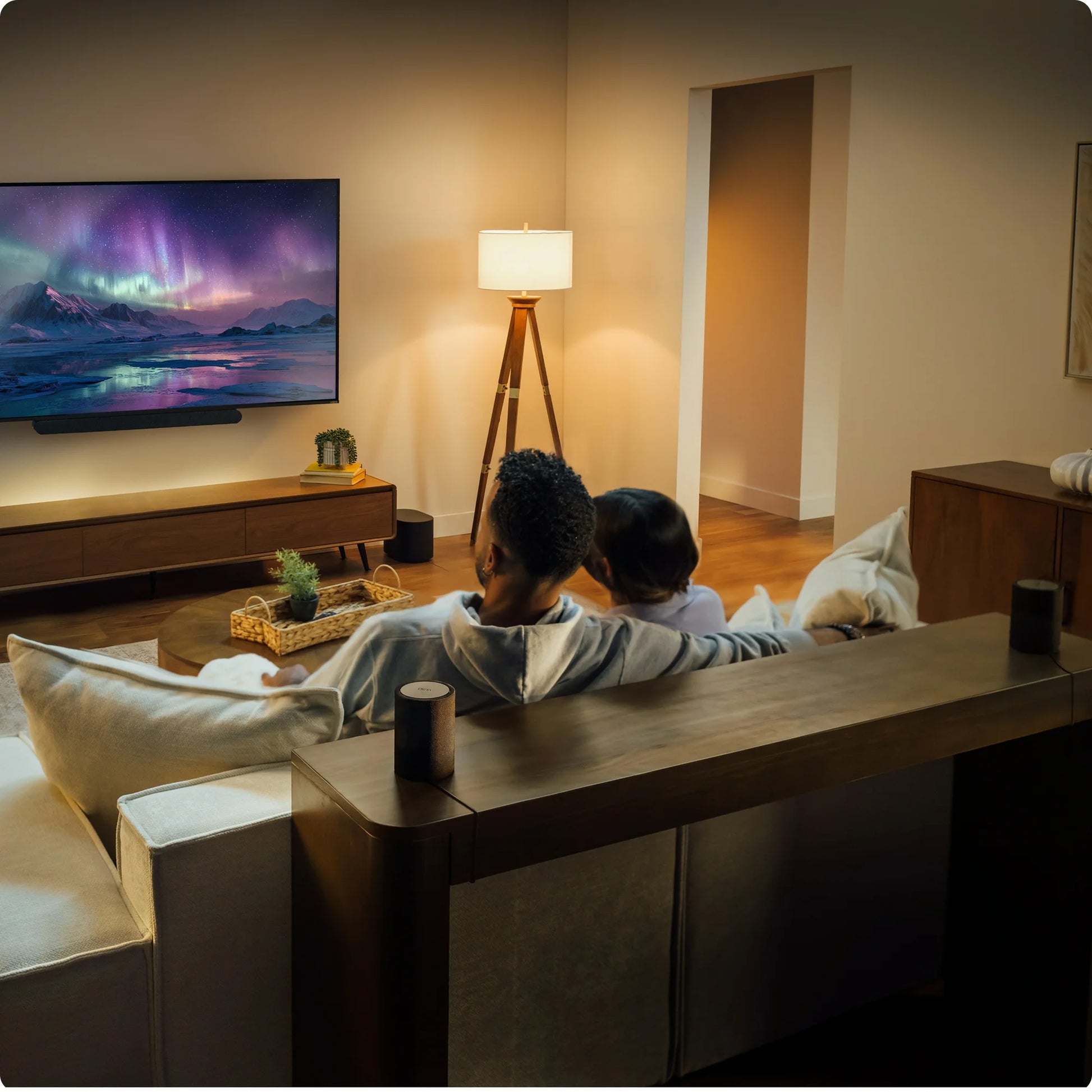 - Dolby Atmos y DTS:X - Inspirado en el cine, Dolby Atmos y DTS:X ofrecen un sonido sensacional que te pone en el centro de tu entretenimiento cuando ves contenido Dolby Atmos o DTS:X, creando una experiencia de audio inmersiva.