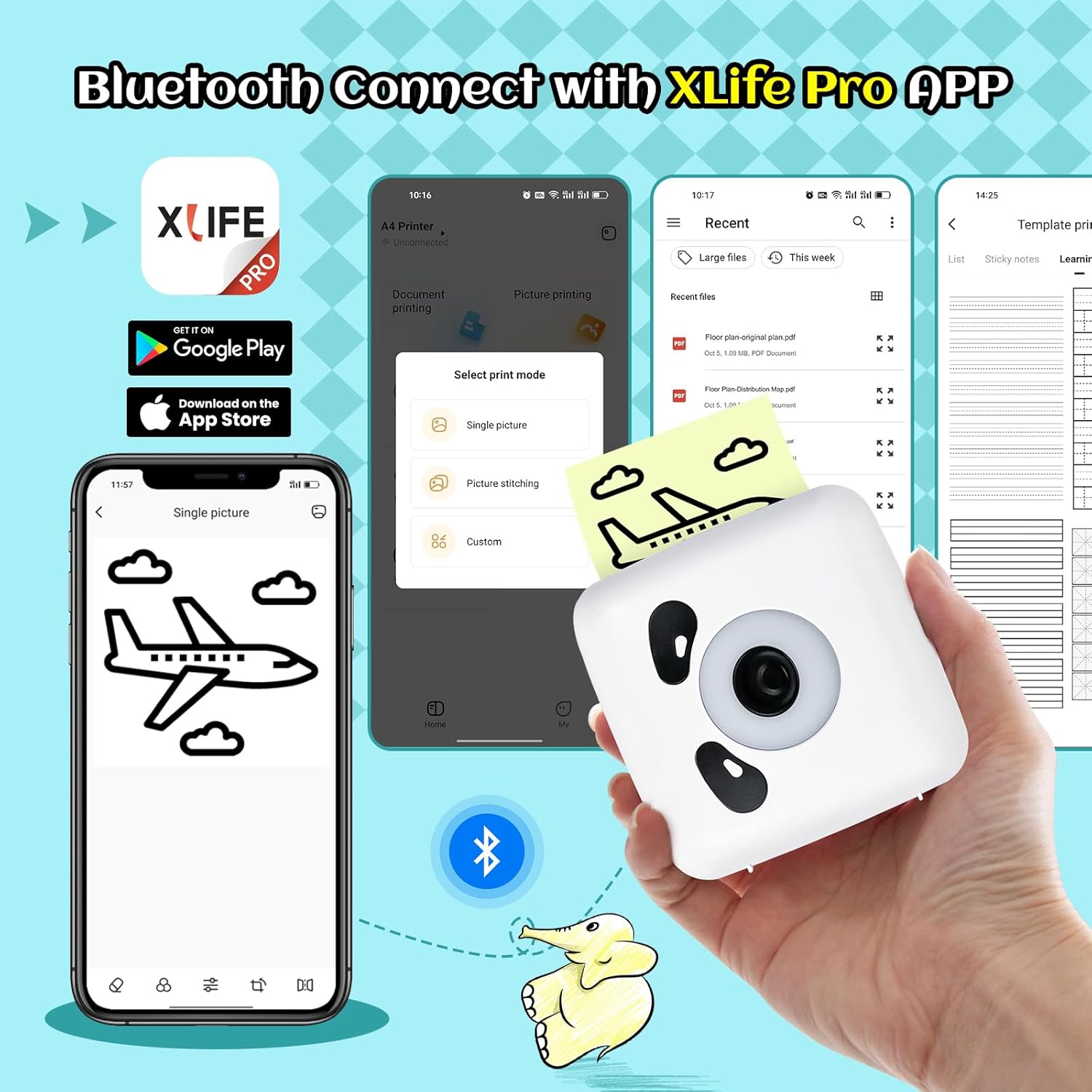 - Tamaño portátil y diseño de moda: impresora de bolsillo de forma simple y elegante, tamaño mini (3.3 x 3.2 x 1.6 pulgadas) se desliza perfectamente en tu bolsillo. Es ideal para Halloween, día de Acción de Gracias, Navidad y regalo de día festivo para niños, familiares y amigos.