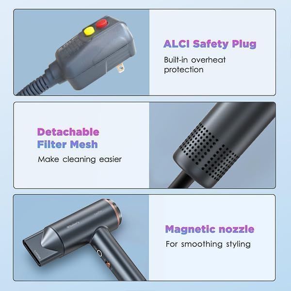 - Diseño único: elegante y de alta calidad que proporciona colores agradables con baja saturación. El secador de pelo pesa 0.95 libras (14.11 oz) y es compacto y portátil, perfecto para uso doméstico y de viaje. Diseño ergonómico con botones simples. El filtro apretado no atrapará el cabello en el aire. El secador de pelo es seguro para niños y mujeres embarazadas.