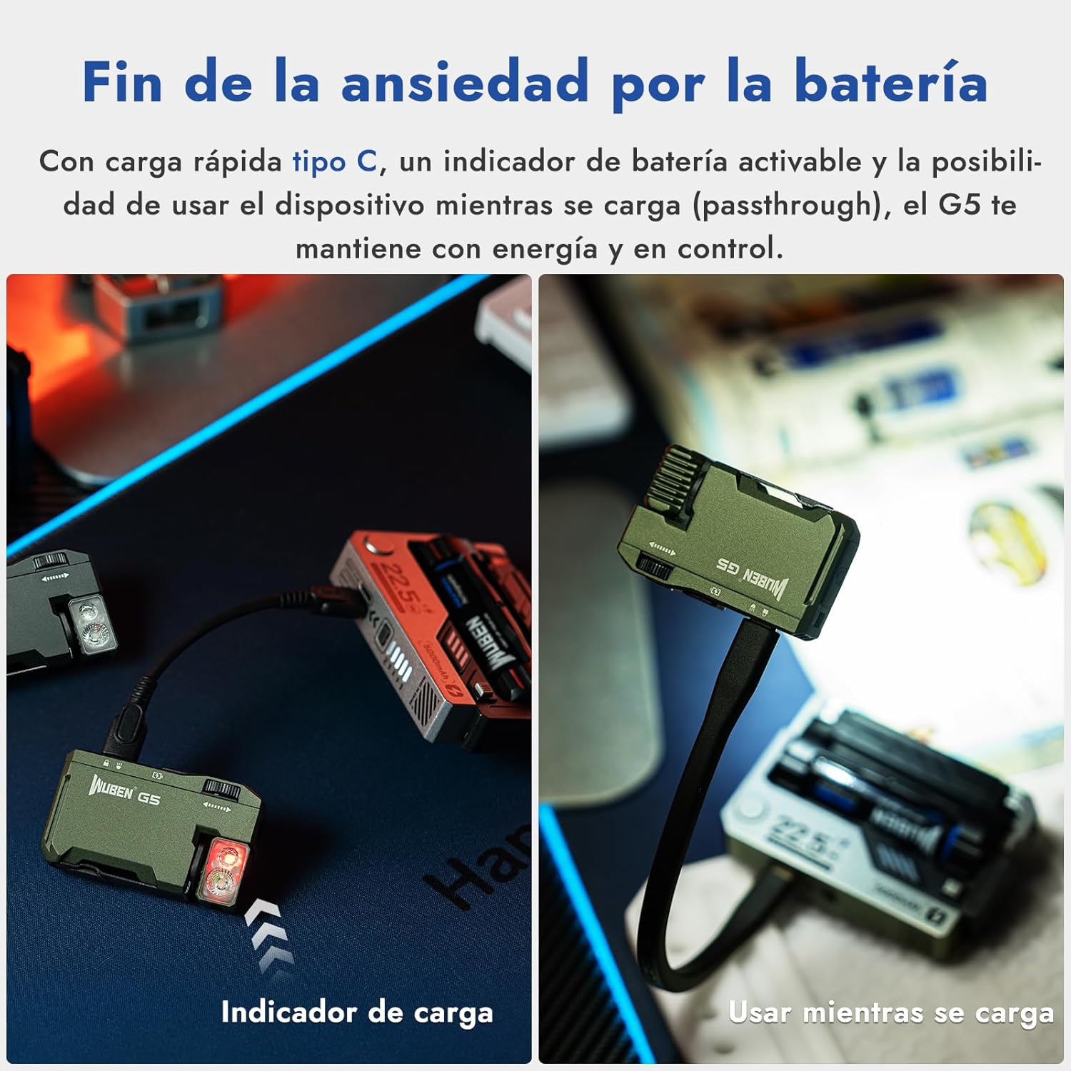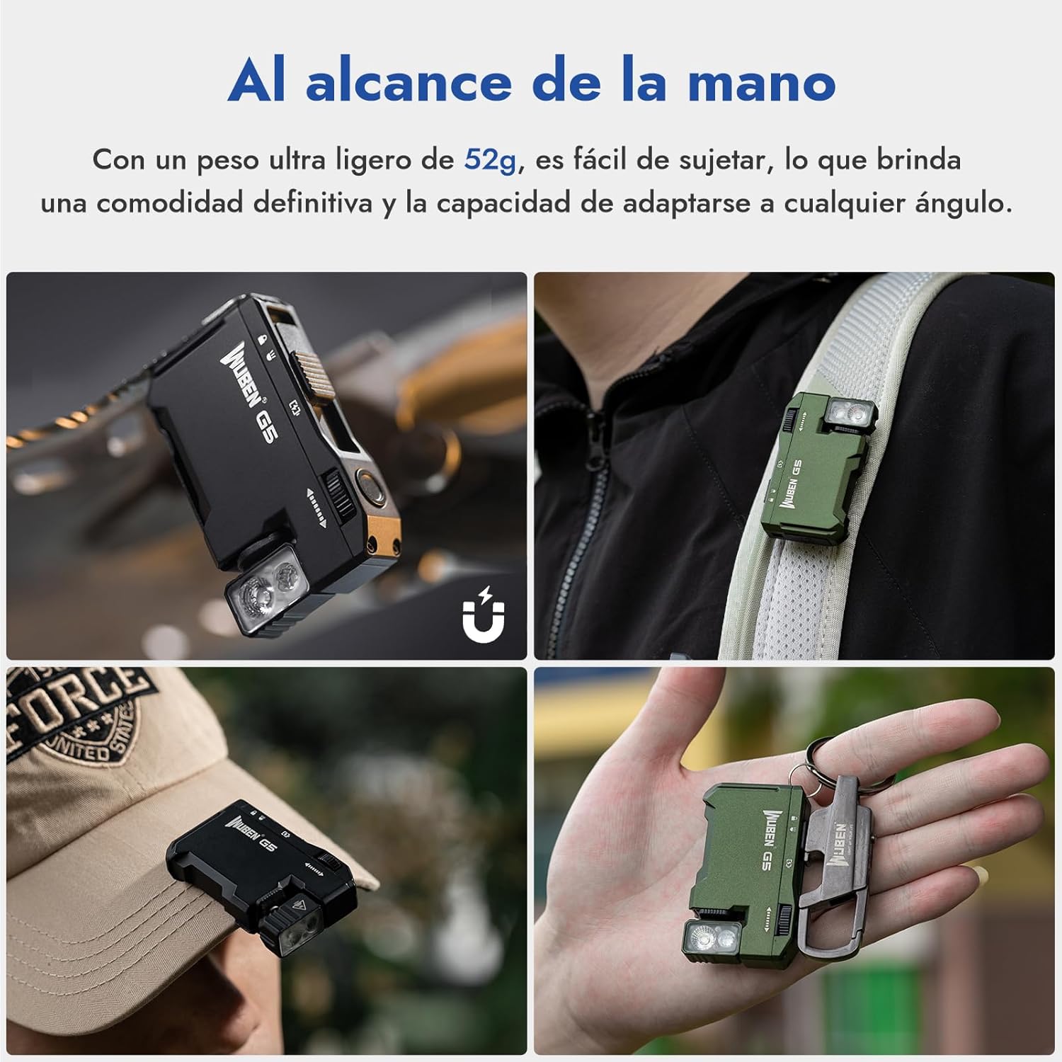 - LANTERA PORTÁTIL EDC RECARGABLE: El WUBEN G5 es una lanterna portátil pequeña y potente adecuada para el uso diario. Tiene múltiples modos de iluminación, con un máximo de 400 lúmenes y una distancia máxima de iluminación de 82 metros. Tiene dimensiones de 3,73 cm x 1,5 cm x 6,2 cm y un peso total de solo 52,3 gramos.